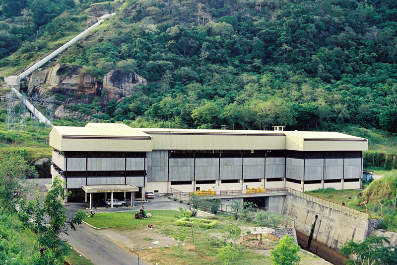 The surface power station is located in the left bank of the Katupath Oya. The power station is equipped with two vertical shaft salient pole 3 phase generators each rated at 70.6MW. The generator voltage is 10.5kV and the output is 60MW at 0.85pf at 50Hz. The prime movers are 70.2MW Francis turbine units running at 500rpm, and water discharging into a 580m long tailrace canal. Energy is transmitted from a 132kV switchyard over a double circuit 16km overhead line to a switching station at Balangoda, as well as another double circuit overhead tower line to the Embilipitiya Grid Sub Station.